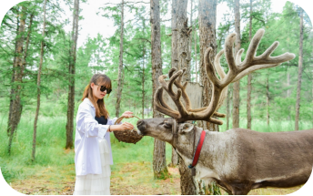 【馴鹿園】(游覽約60分鐘)馴鹿又叫“四不像”和“角鹿”。不過當地人稱為是“森林之舟”,之所以這樣叫它,是因為它不僅是人類的朋友,而且還全身都是寶,是國家的二級重點保護動物。馴鹿的主要食物是苔蘚,同時也吃蘑菇和木本植物的嫩枝葉,您在這里可以體驗到喂食馴鹿,和馴鹿進行親密接觸等樂趣。與鹿在原始林中拍一組美照,做朋友圈最靚的“崽”。